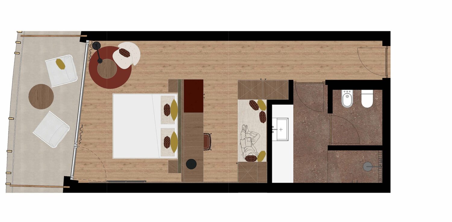 Großzügiges Superior Zimmer im neuen Trakt des Hotels mit bodentiefer Fensterfront und warmem Parkettboden. Der direkte Blick auf die umliegende Bergwelt lässt sich bereits vom Bett aus genießen. Eine Day-Bed-Koje sowie ein Schreibtisch schaffen Raum für Entspannung und konzentriertes Arbeiten. Hochwertige Naturmaterialien, warme Holztöne und fein abgestimmte Stoffe prägen die ruhige, zeitlose Gestaltung. Für erholsamen Schlaf sorgt ein Simmons Kingsize Bett mit Health-Sleep-System.