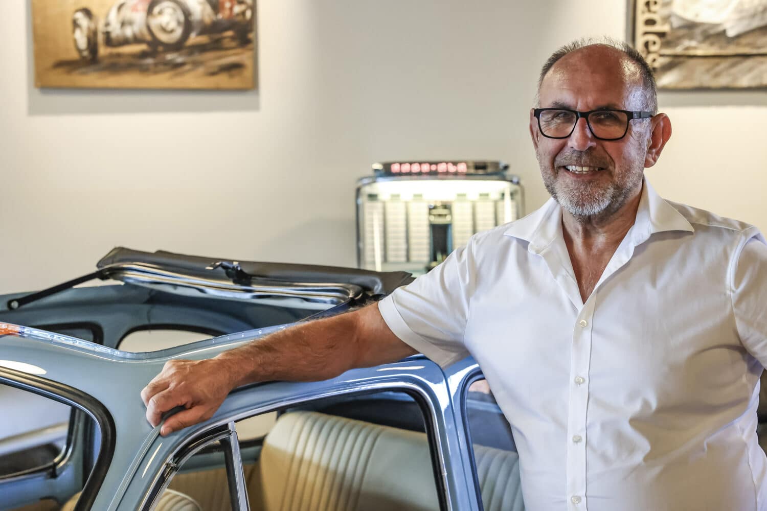 “Questa è la mia vita”, dice guardosi indietro: “Non potrei mai sedermi a casa a ciondolare” È uno a cui piace fare di tutto, ma allo stesso tempo sa anche mantenere l’equilibrio nelle cose e oggi la sua Oldtimer Galerie è aperta al pubblico solo il sabato e su appuntamento. Jürgen vede con grande soddisfazione che i suoi figli Florian e Tobias vogliono seguire le sue orme ed entrambi hanno responsabilità nelle aziende di famiglia. Jürgen considera anche il fatto che i figli abbiano la passione per i motori nel sangue una grande fortuna.