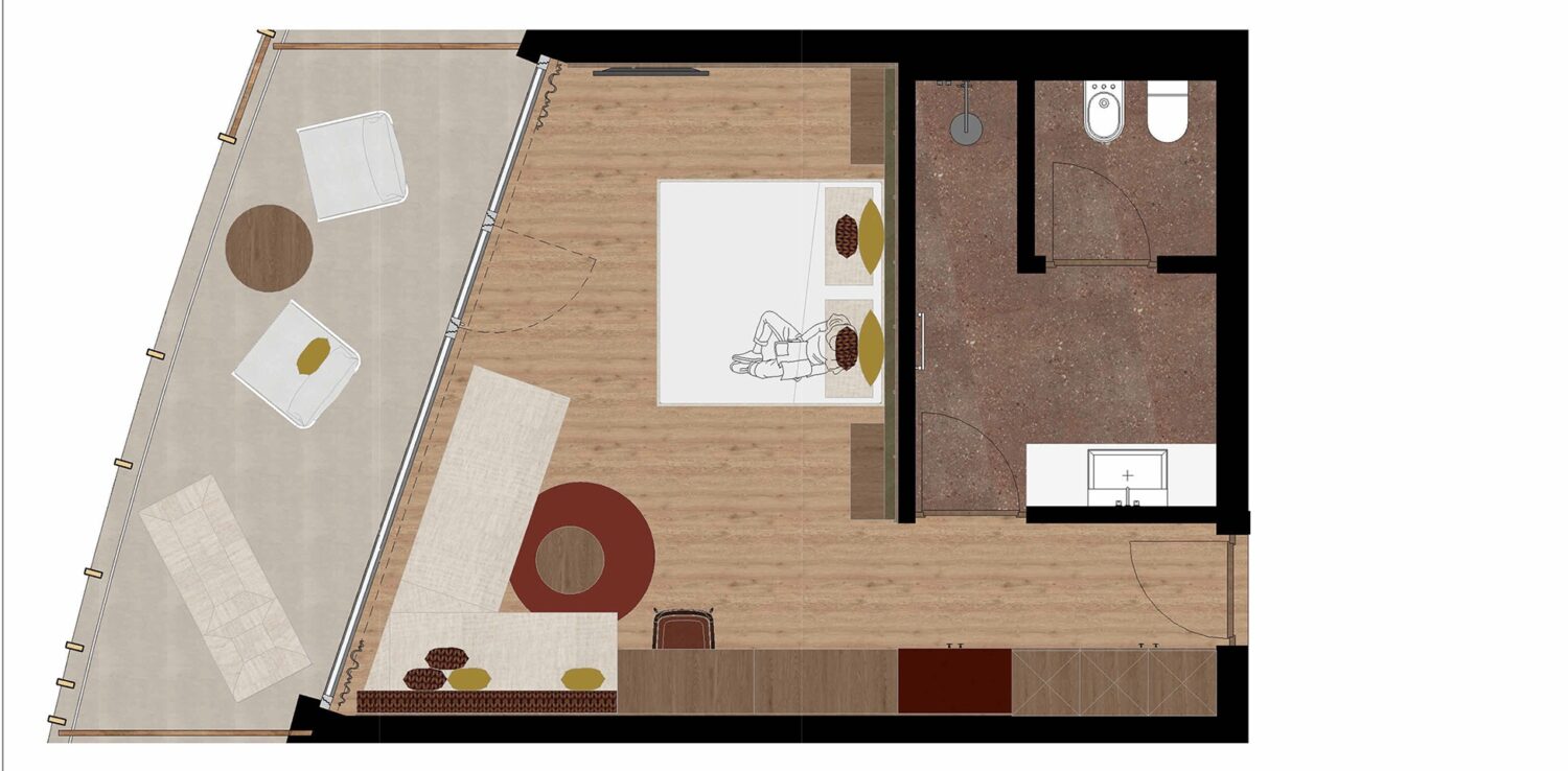 Luminosa camera Superior nel nuovo corpo dell’hotel con vetrate a tutta altezza e caldo pavimento in parquet. La lounge con day bed e la vista diretta sul Catinaccio – già dal letto – creano una particolare sensazione abitativa tra natura e comfort. Materiali naturali di alta qualità, calde tonalità in legno e tessuti finemente coordinati creano un’atmosfera alpina rilassante. Un letto Simmons Kingsize con sistema Health-Sleep garantisce un sonno rigenerante.